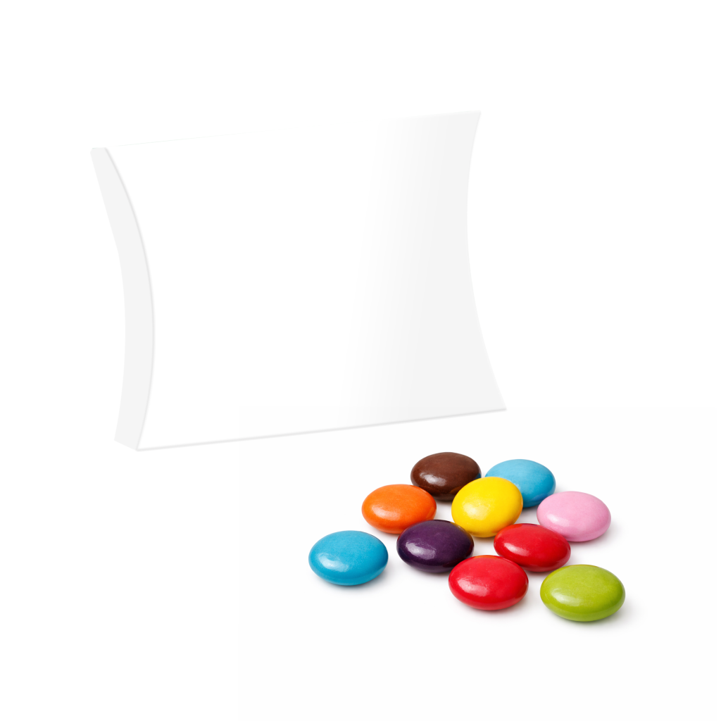 Colour your brand with impact! Our Eco Pouch Box comes filled with crunchy chocolate Beanies. 🌈